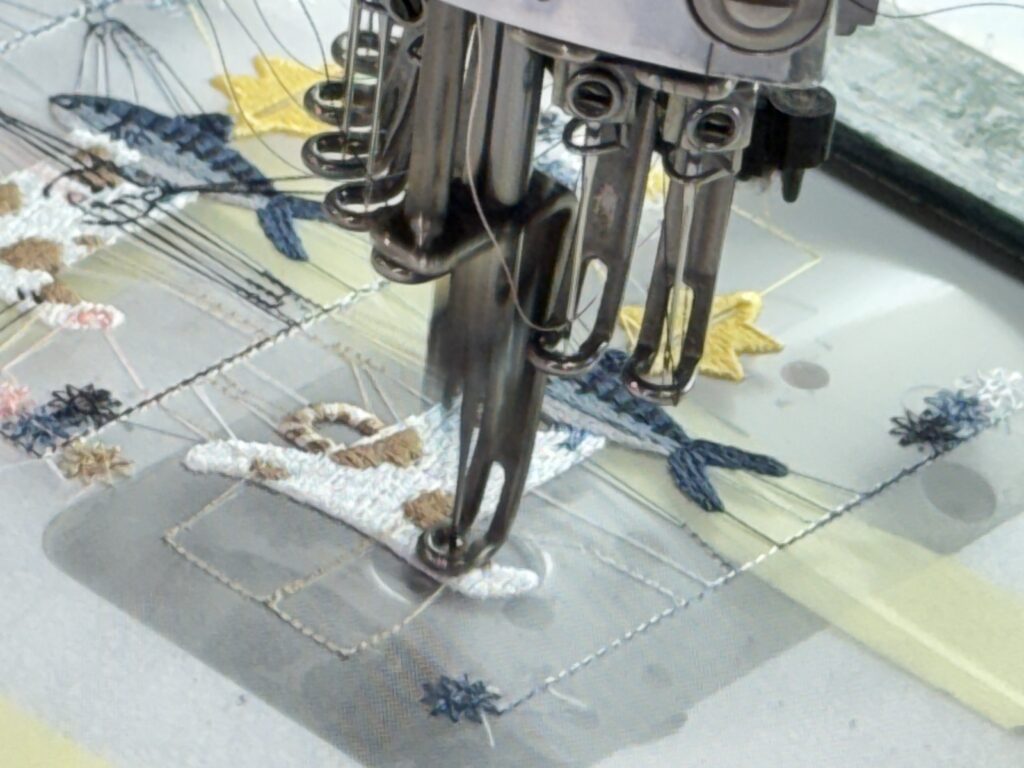 今回は最初から出来上がりまでを見たくて、無理を言ってサンプル機で刺して頂きました。