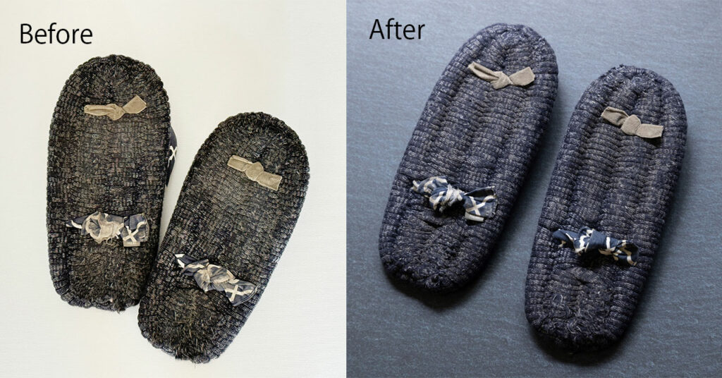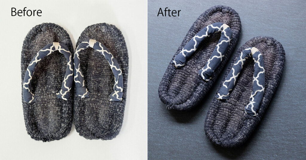 Before/Afterは洗って乾かして、鼻緒を整えた画像です。 あとは何もしていません。 汚れをしっかり落とすことで、ここまで戻ります。 鼻緒の直し方は下記の動画を見てください。