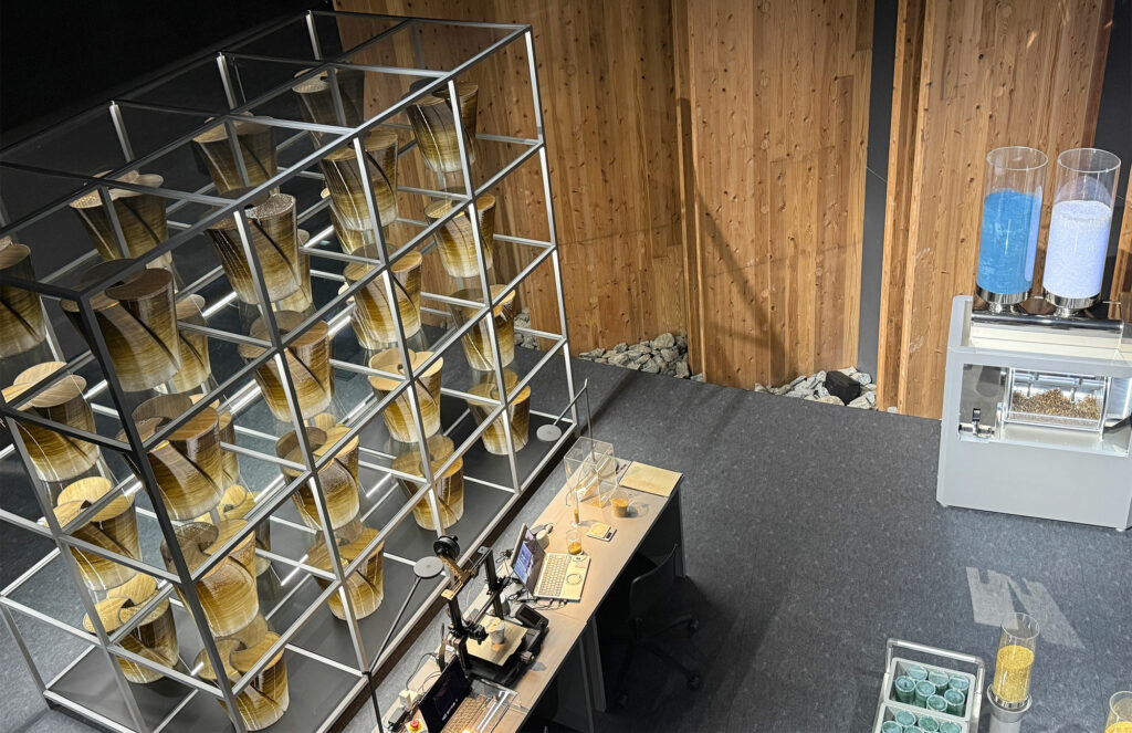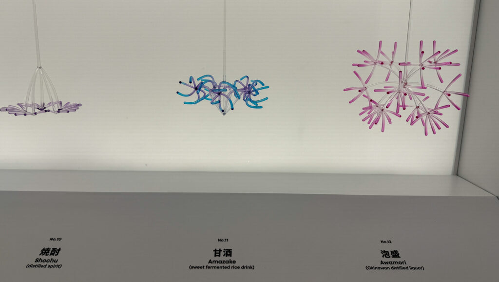 日本の食文化を支える「菌(麹菌など)」によって生み出された液体や物質が表現されていて、微生物の力ということらしいです